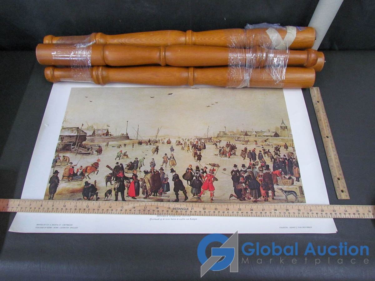 Set of Wooden Table Leg, & (2) Print's: "Hendrick Avercamp 1585-1634"; Printed by NV. G Kolff & Co.-
