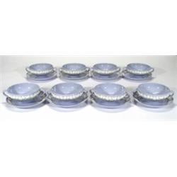 Set of eight Wedgwood Queensware soup bowls and saucers, marks to bases