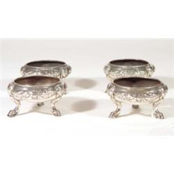 Set of four 18th century silver salts,