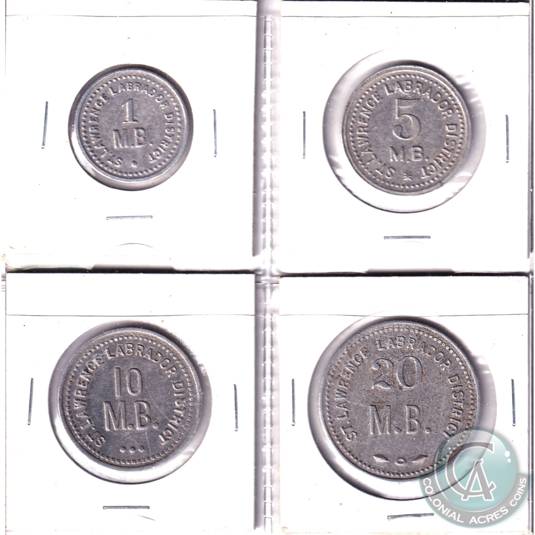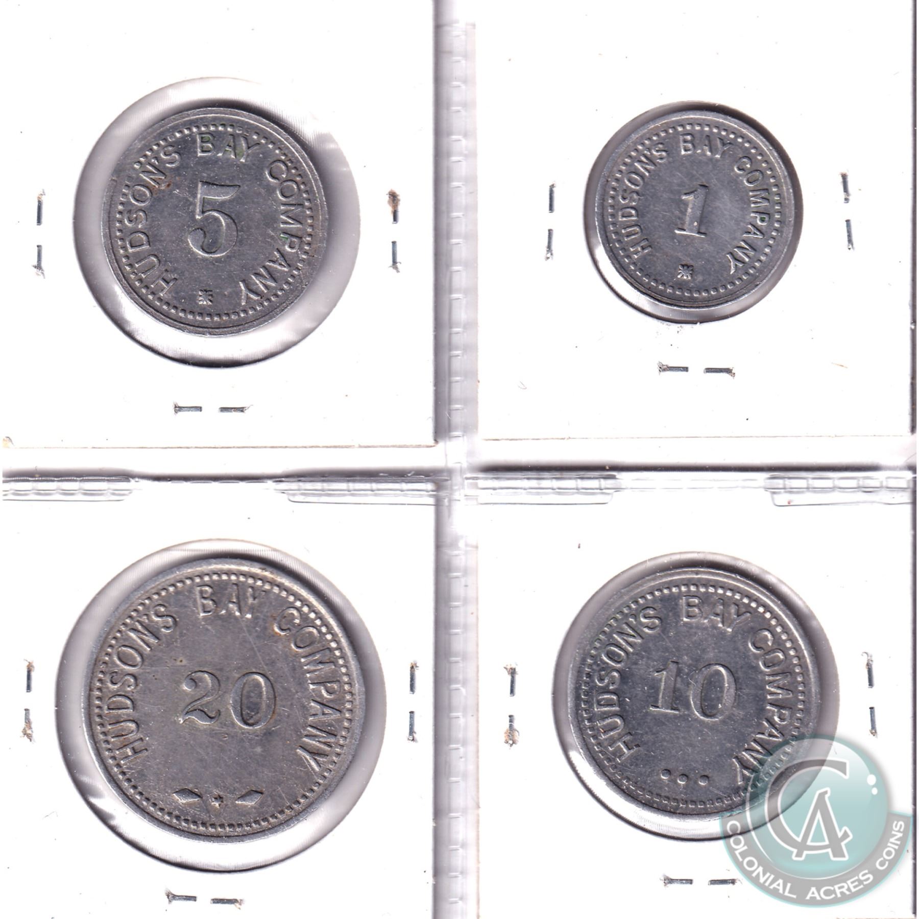 Set of four Hudson Bay Company St-Lawrence-Labrador District Tokens. Lot includes: 1, 5, 10, & 20 Made Beavers (Gingras 260a, 260d, 260f, & 260g). 4pcs. EF+