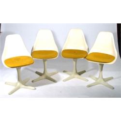 Set of four moulded white plastic swivelling chairs with cushion seats, stamped ARKANA to bases,