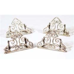 Set of four silver scroll design folding menu holders, Birmingham, 1911