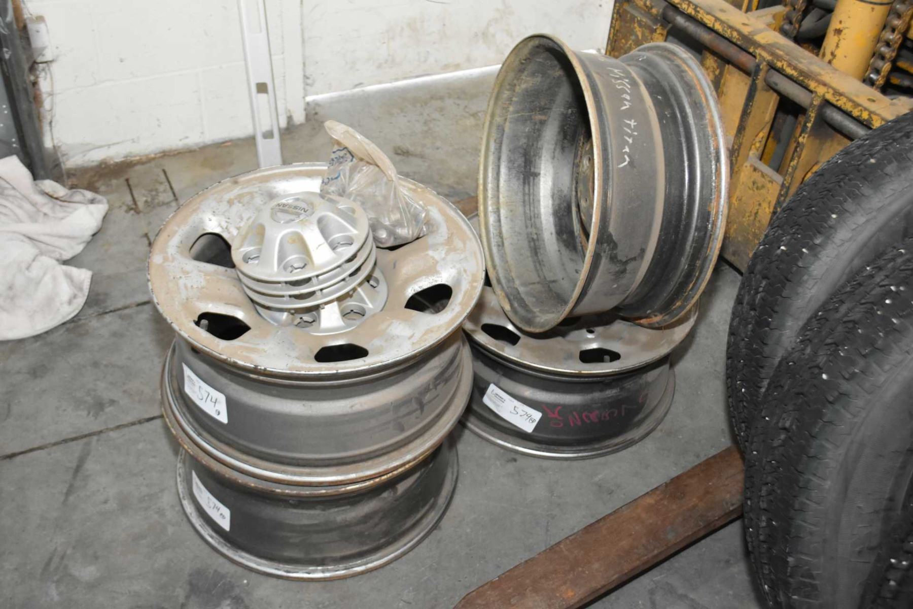 Set of four slightly used steel rims, nuts and center caps from a 2006 Nissan Titan- AUCTION HOUSE WILL NOT PROVIDE SHIPPING FOR THIS ITEM. BUYER MAY ARRANGE THEIR OWN COURIER.