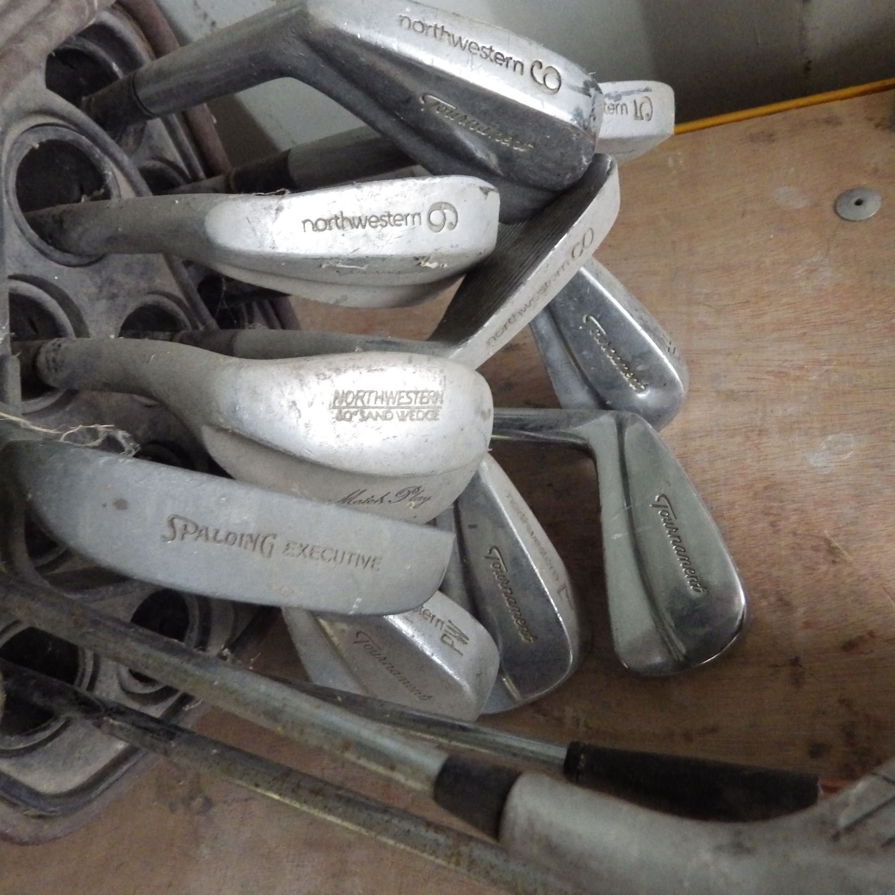 Set of golf clubs and bag with cart