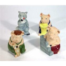 Set of hand painted Wade Collectors' Club 'Three Pigs and the Big Bad Wolf', marks to base, largest 13cm high
