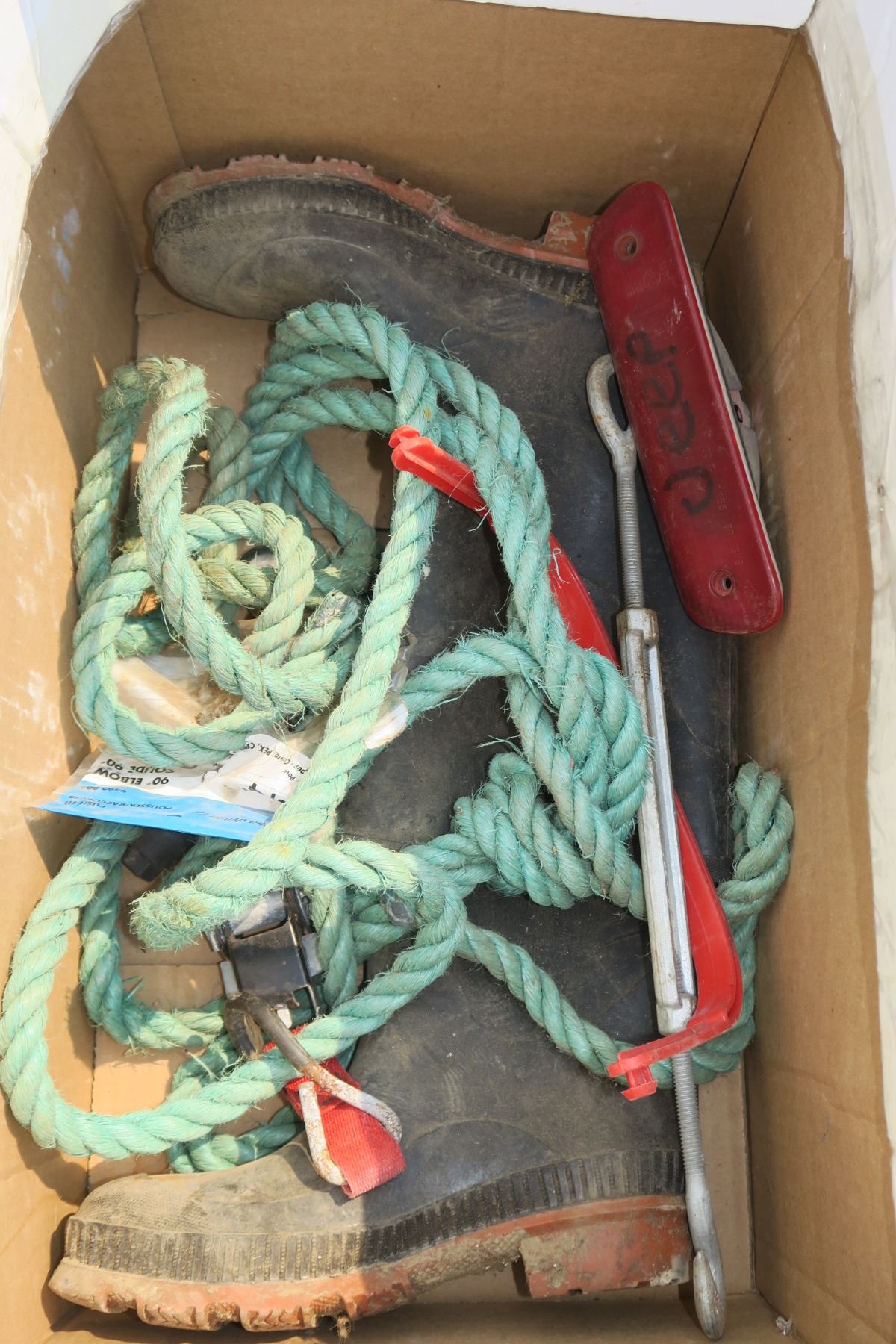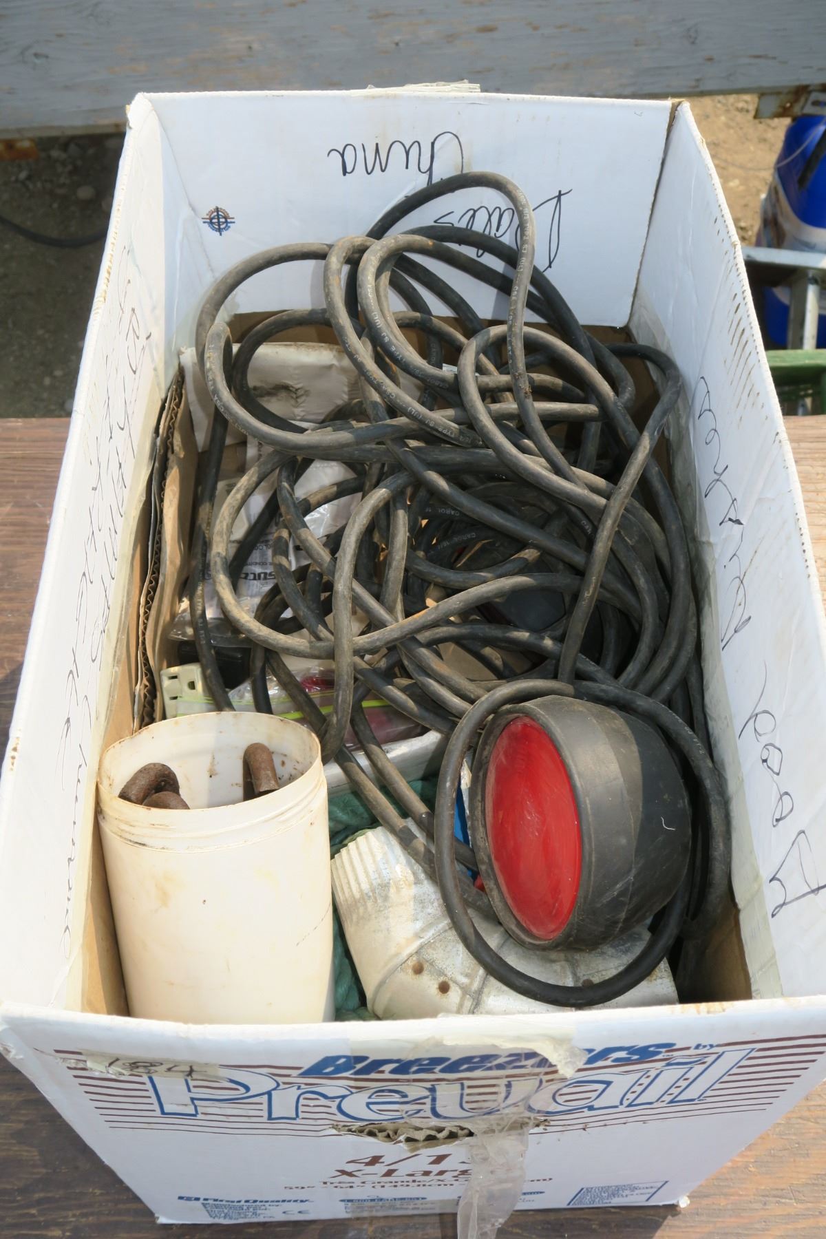 Set of mag Lights (parts) Box of electrical, rubber boots & misc.