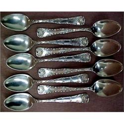 Set of nine Tiffany sterling silver teaspoons "Wave Edge", monogrammed