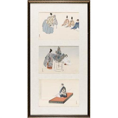 <B>Set of Six Kyogu Japanese Prints</B></I> <BR>Two sets of three framed prints<BR>20 x 38-1/2 inches (each) <BR>Provenance:<BR>Paige Gallery, Dallas, 1983<BR><BR><b>Shipping:</b> Requires 3rd Party Shipping (<a target="_blank" href="http://www.heritageauctions.com/common/shipping.php">view shipping information</a>)