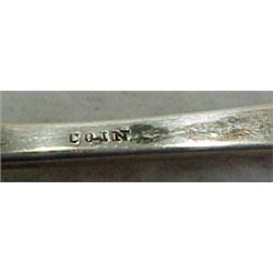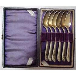 Set of six coin silver spoons in fitted case, engraved and initialed M M Estimate 60/100