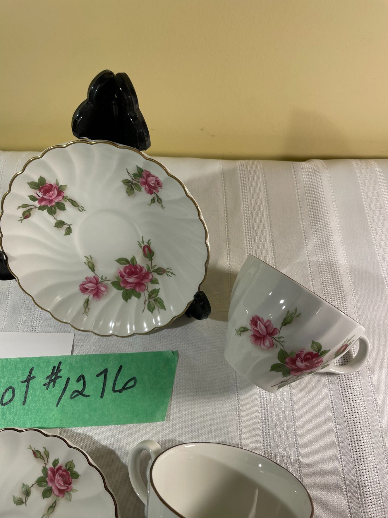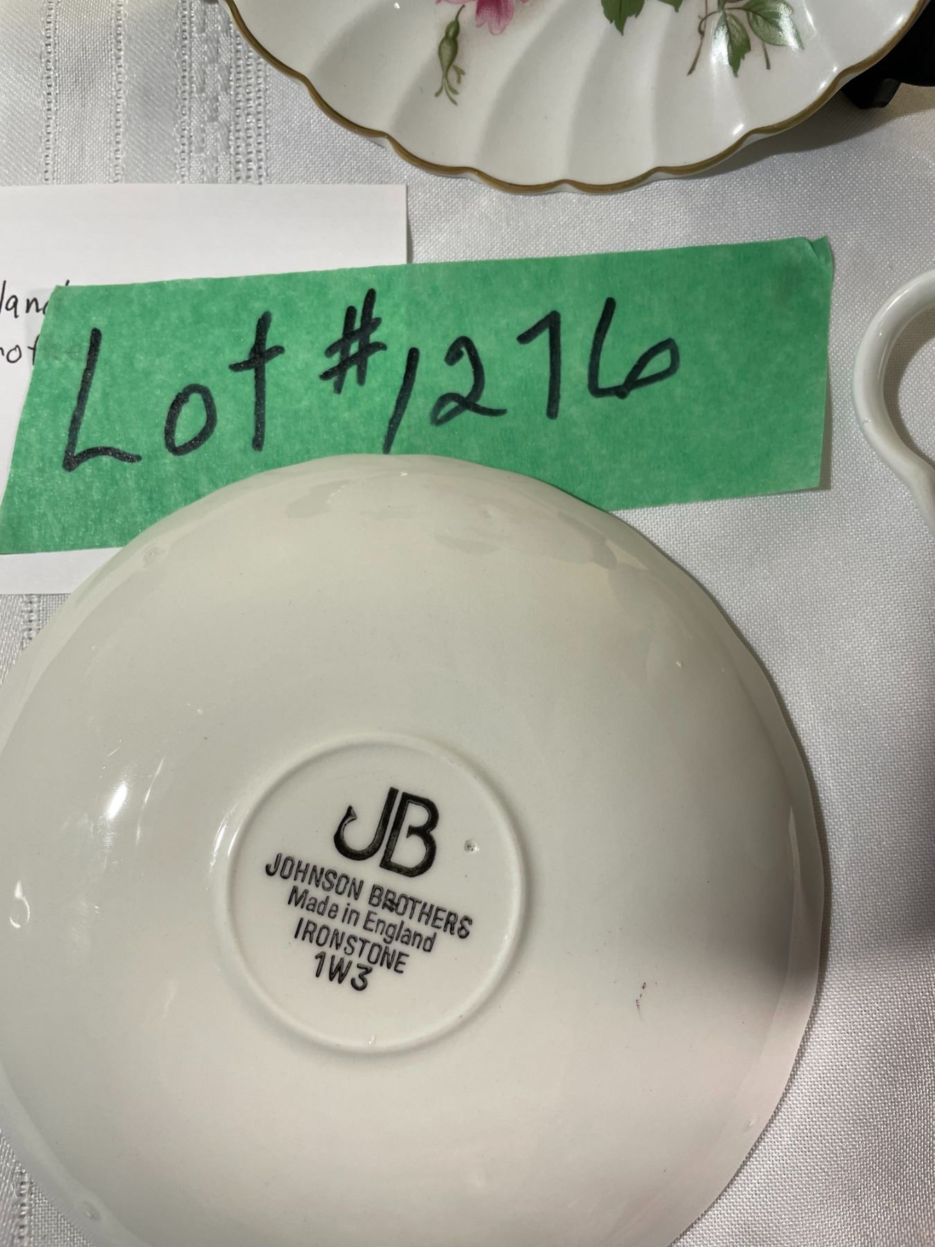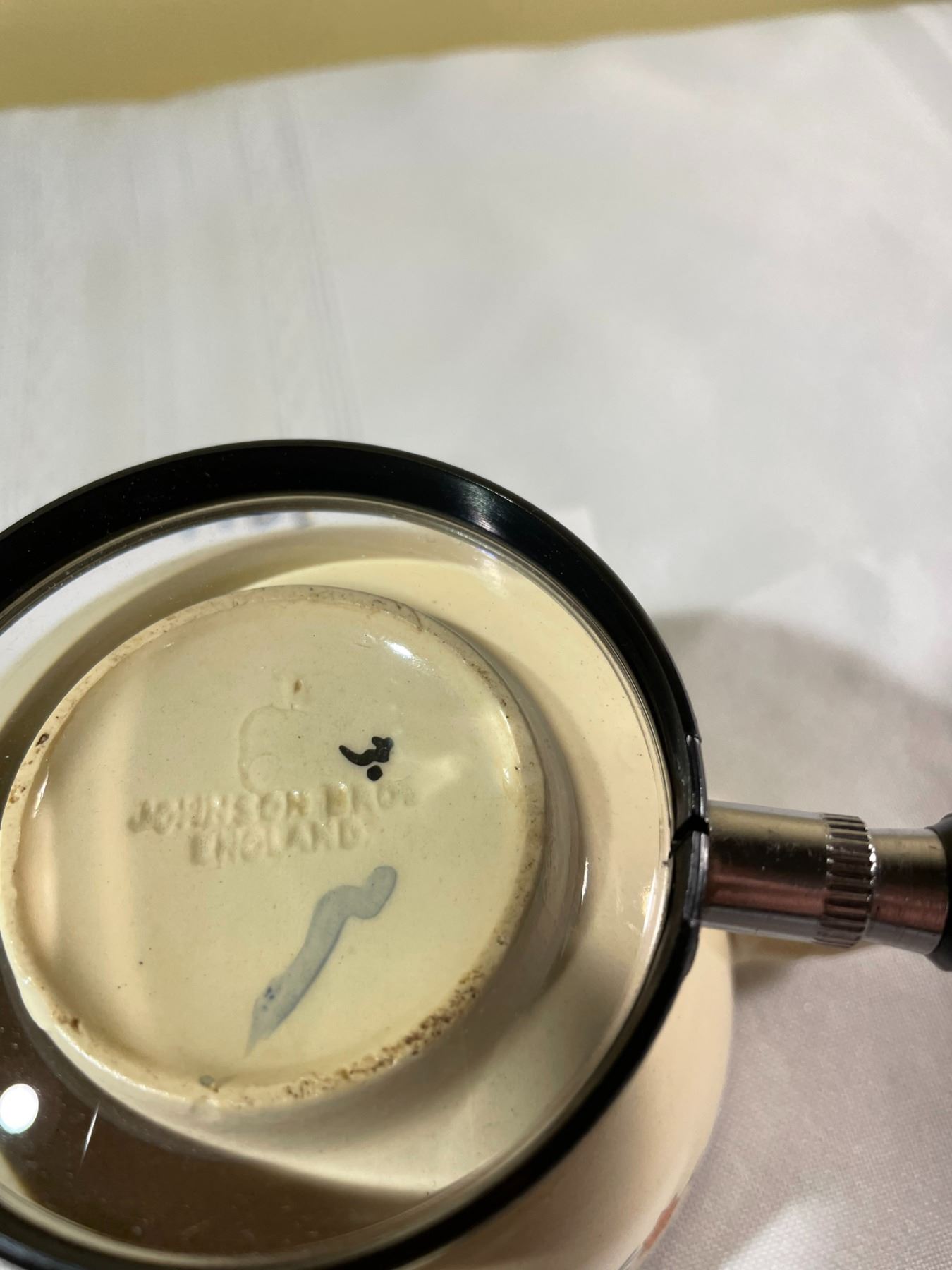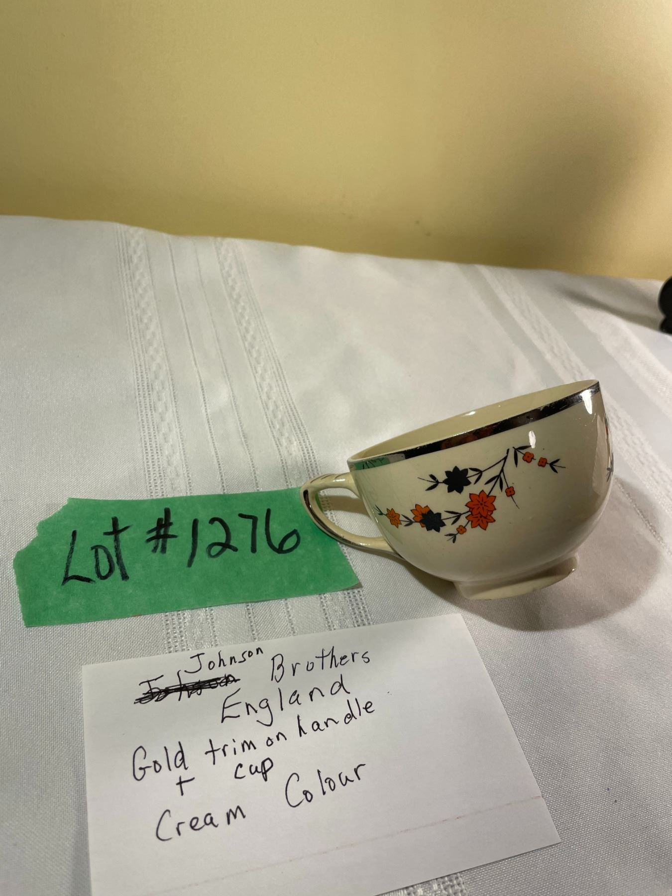 (2) Sets of Teacups and Saucers Made in England by Johnson Brothers Iron Stone 1 of 141 and 1 of w3 Saucers Rose pattern (1) Teacup only Johnson Brothers England Cream colour + Gold Trim on Rim + Handle