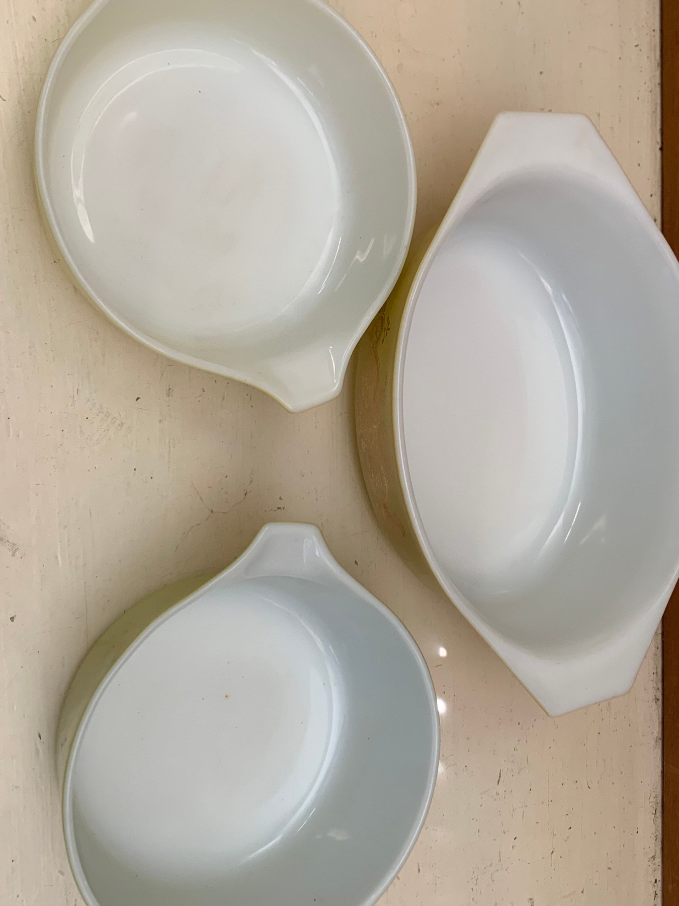 Set of three Vintage Pyrex Casserole Dishes Pyrex Golden Wreath 043