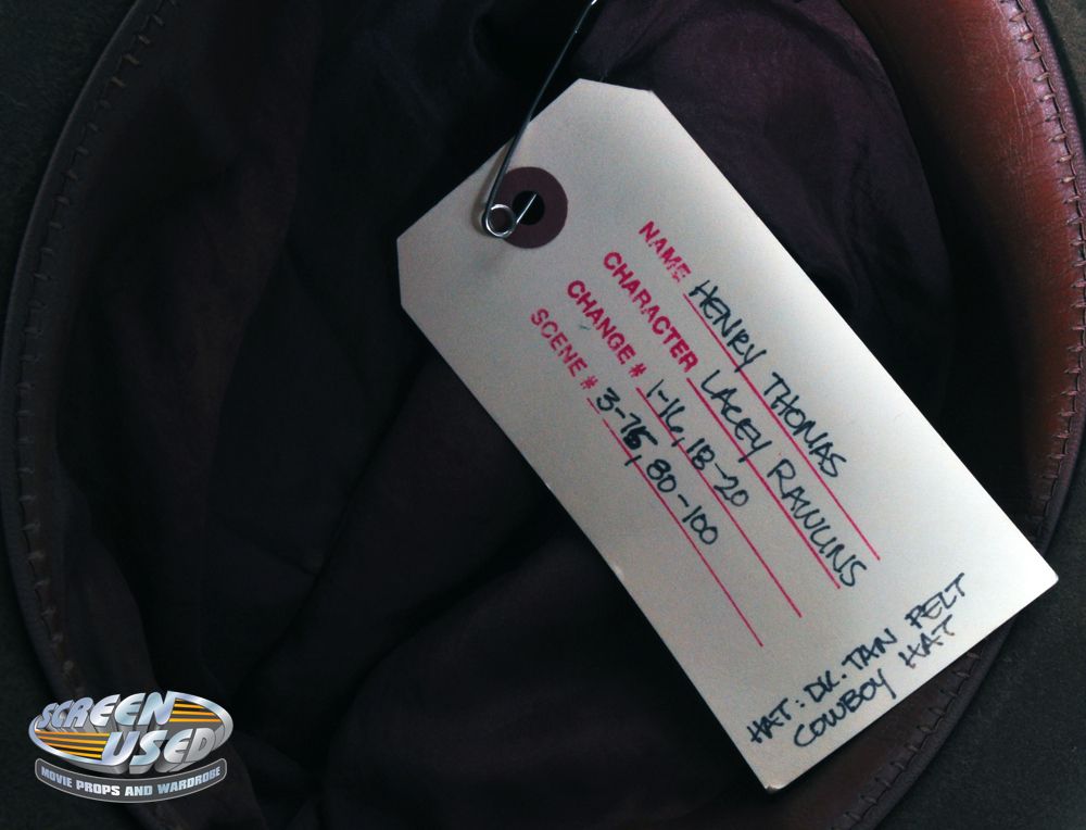 (Columbia, 2000) These hats were acquired for the production for use by Matt Damon as John Grady Cole, Henry Thomas as Lacey Rawlins and Lucas Black as Jimmy Blevins. Each hat has a costume tag that details the scenes that they were used in the film.