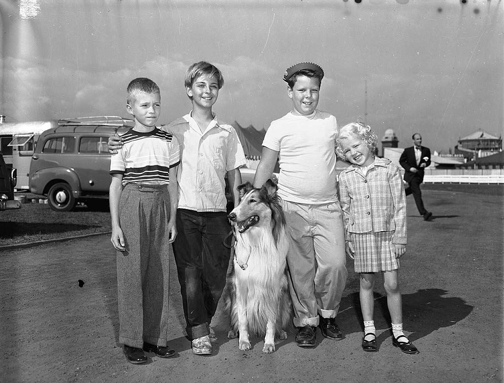 These two coats were custom-made and worn by Lassie in the early days for parades, appearances and maybe film and television. One coat features two large patches for the "U.S. Savings Stamps Minuteman Award" with four stars on the collar and the second coat has "Jeff's Collie" applied to one side and "Lassie" to the other. Very few artifacts surface from the most famous dog hero, making this set extremely rare. Both coats are in very good condition with only minor wear and staining.