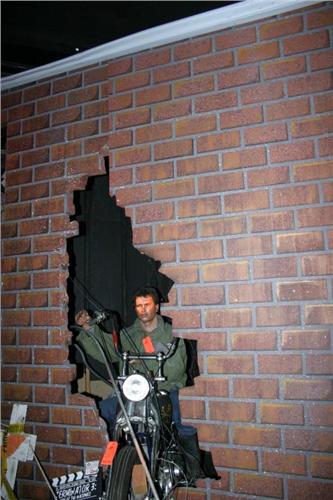 Set only (no fax figures). Brick wall facade. This set was used for Movieland's Terminator set.