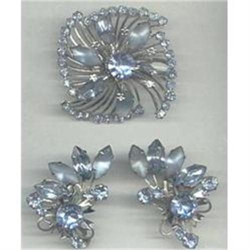 <tr><td>Style:1960's Blue Rhinestone Brooch&Ear Clips</td></tr>