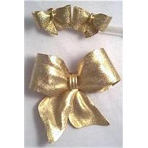Elegantly Beautiful Unsigned Vendome Textured Goldtone Bow Brooch/Ears</em></td>