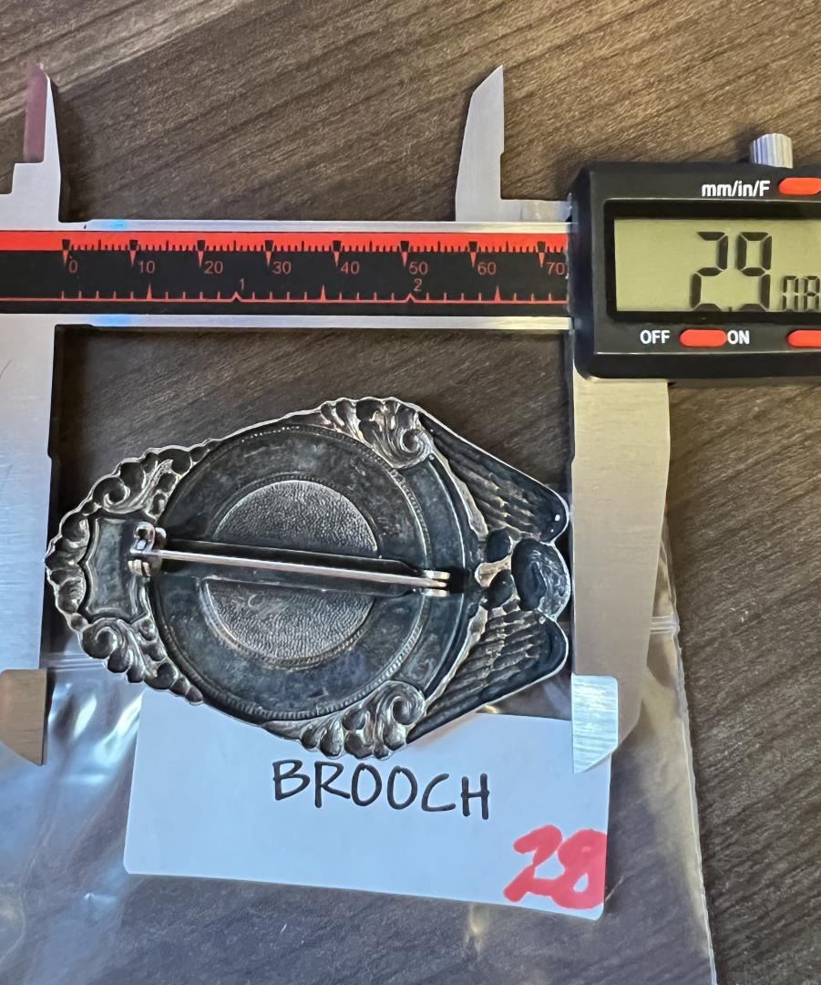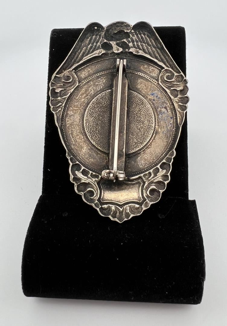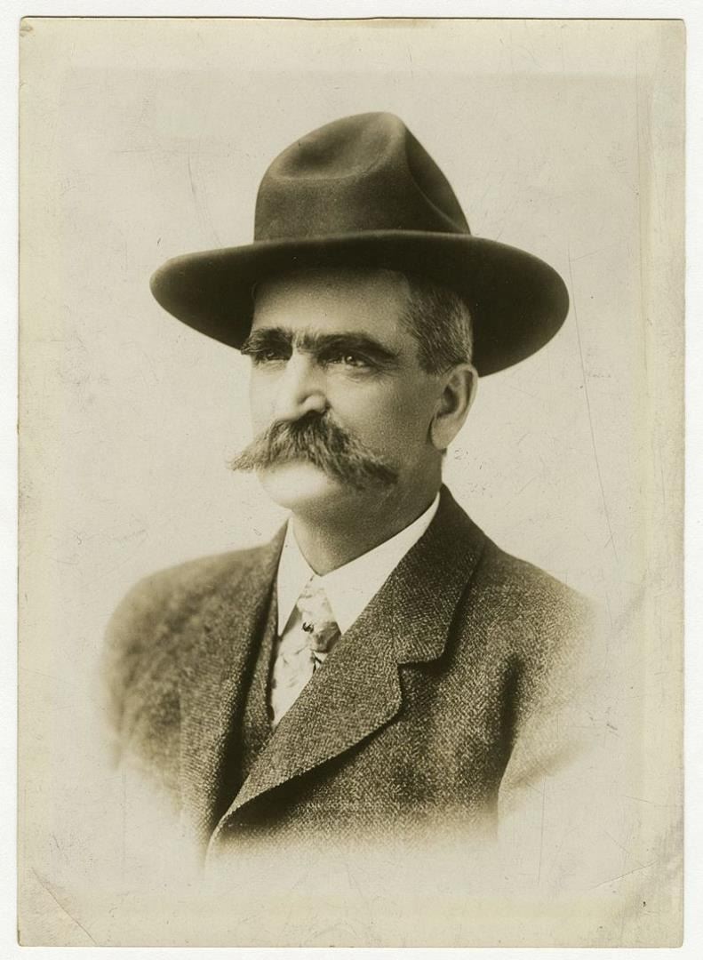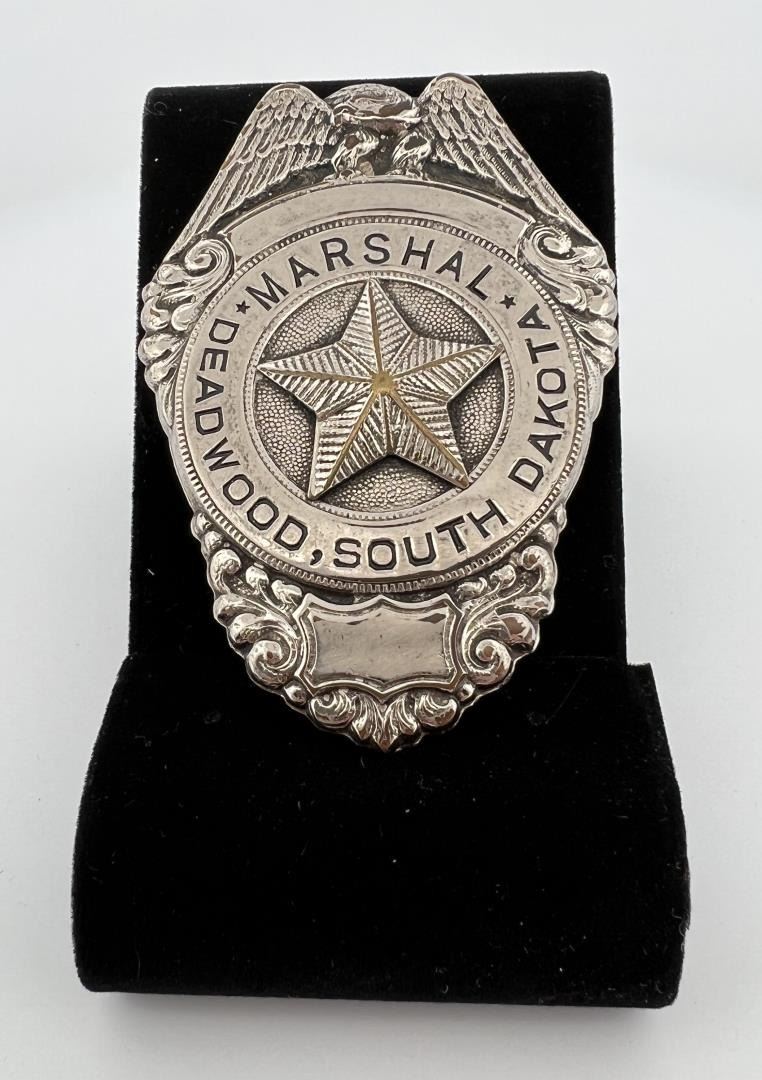 3" long. Seth Bullock (July 23, 1849 – September 23, 1919) was a Canadian-American frontiersman, business proprietor, politician, sheriff, and U.S. Marshal. He was a prominent citizen in Deadwood, South Dakota, where he lived from 1876 until his death, operating a hardware store and later a large hotel, the Bullock Hotel. Deadwood was a lawless, rowdy camp. Two days before Bullock and Star’s arrival, Wild Bill Hickok was murdered by Jack McCall. McCall shot Hickok in the back of the head while he sat playing poker. McCall was later found not guilty by an impromptu camp court and released, after which he promptly left town. (McCall was later re-tried, found guilty, and executed.) The demand for law enforcement grew following Hickok's murder and Bullock's background made him the logical choice for Deadwood's first sheriff. However, he was not elected to the position, but rather was appointed by then-Governor Pennington of Dakota Territory in March 1877. In November 1877, a special election was held in Lawrence County of which Deadwood was located. Bullock was the candidate for sheriff on the Peoples Party (Republican) ticket, and John J. Manning was the candidate for the Democratic Party. Manning won the election, thereby becoming the first elected sheriff for Lawrence County of which the main city was Deadwood. Bullock's tenure as appointed sheriff lasted approximately nine months. In 1878, Bullock again ran for sheriff of Lawrence County on the Republican ticket, and faced incumbent John Manning. As was the case in 1877, Manning won the election against Bullock and was awarded a two-year term as sheriff. During his tenure as the appointed sheriff, Bullock took his job seriously, deputizing several residents and tackling the job of civilizing the camp. Despite (or perhaps because of) a reputation for fearlessness and an uncompromising nature, Bullock managed the task without killing anyone. Bullock had several 'run-ins' with Al Swearengen, proprietor of the notorious Gem Theater, Deadwood's most notable brothel. Swearengen had a knack for making money from vice and shrewdly invested some of his profits in cultivating alliances with the camp's wealthy and powerful. Bullock was appointed Marshal in 1905 by President Theodore Roosevelt and again in 1909 by President William Howard Taft. When appointed sheriff, one of Bullock's first duties was to confront Dodge City Deputy Marshal Wyatt Earp, who was possibly interested in the sheriff's job. Bullock told Earp that his services were not needed. A week later, Earp left Deadwood to return to Dodge City. Having attained some stability in Deadwood, Bullock brought his wife Martha Eccles Bullock and daughter, Margaret, to town from her parents home in Michigan, where they had been living during this period. They subsequently had another daughter, Florence, and a son, Stanley. Bullock and Star purchased a ranch where Redwater Creek met the Belle Fourche River and dubbed it the S&B Ranch Company. Bullock is also credited with introducing alfalfa farming to South Dakota in 1881. Later, he became a deputy U.S. Marshal, partnered with Star and Harris Franklin in the Deadwood Flouring Mill, and invested in mining, the local growth industry. Bullock and Star eventually expanded their business interests to the towns of Spearfish, Sturgis, and Custer. Bullock, then a deputy sheriff from Medora, North Dakota, met Theodore Roosevelt in 1884 while bringing a horse thief known as Crazy Steve into custody on the range, near what would become the town of Belle Fourche. The two became lifelong friends, Roosevelt later saying of Bullock, Seth Bullock is a true Westerner, the finest type of frontiersman. Provenance: Jack Ooley Collection.