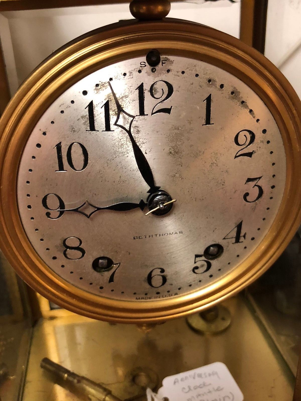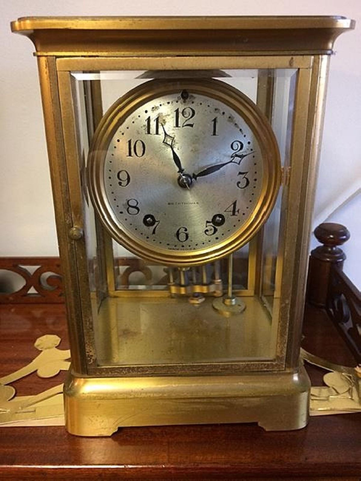 Seth Thomas crystal regulator clock, key wind, bevelled glass with key and pendulum. In running condition.