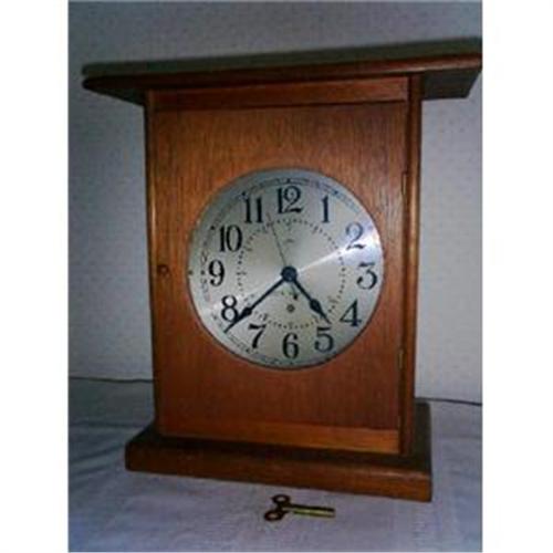 Seth Thomas center sweep (ship type) dated 6, 1944, Serial # 5164. This timepiece utilizes a fully jeweled over coil balance escapement and is in excellent condition, cleaned, and oiled. The case is not original, well made mahogany. The dial is engraved and filled silvered brass.