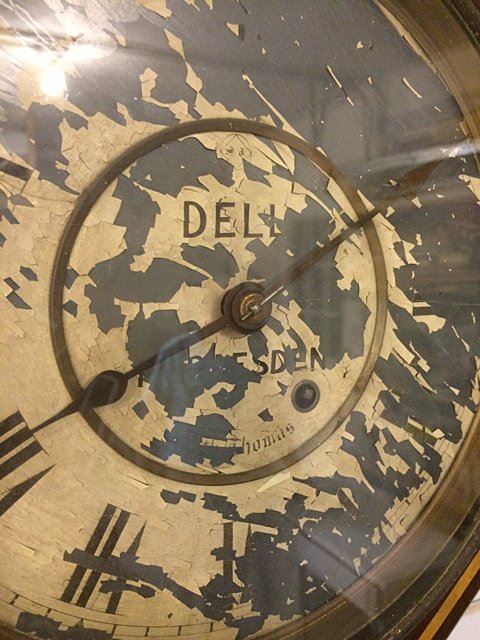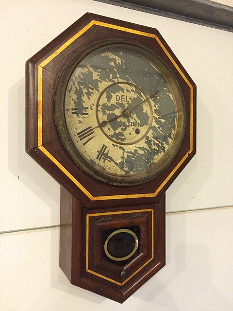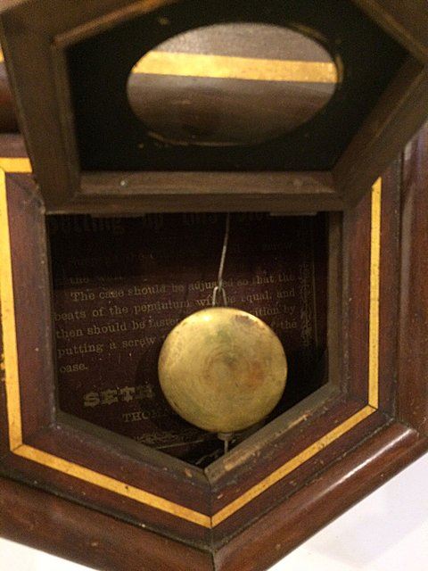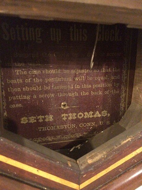 Seth Thomas Country Store Advertising Clock, Thomaston, CT. Has original black label with gold lettering, original pendulum, dial has paint loss.