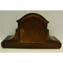 Seth Thomas mantle clock. Works. Walnut with high gloss finish. Round brass feet. Nice chimes on the hour. 10" x 17-1/4" x 5". Marked on face. Has key and weight. Condition: Very clean.