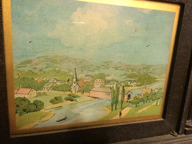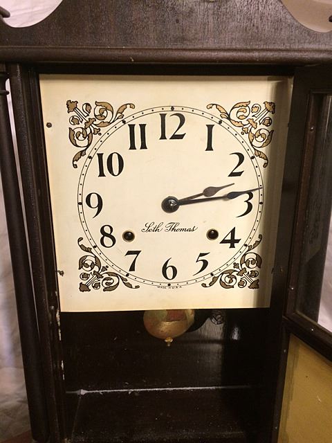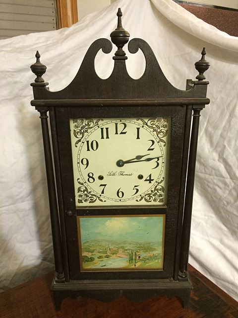Seth Thomas Pillar and Scroll Clock, smaller size, measures approx. 12" x 24". Nice country village scene on glass.