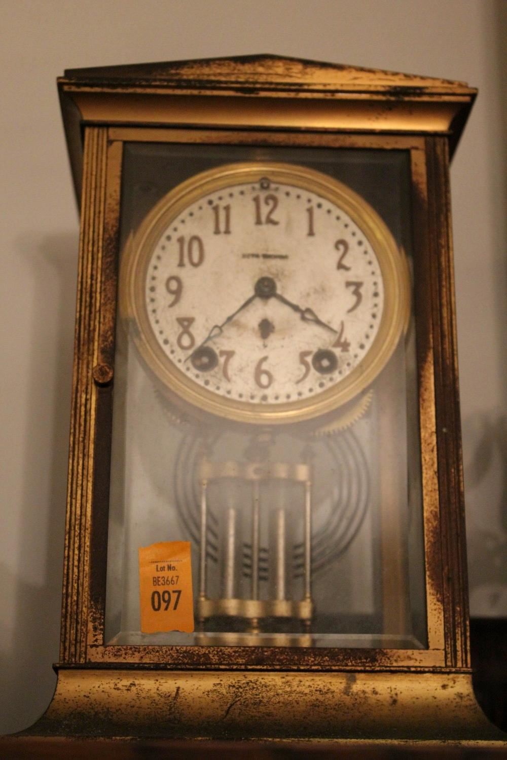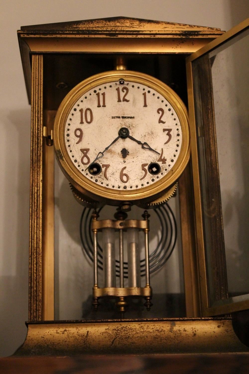 Seth Thomas crystal regulator clock. Approx. 11.5 inches tall x 6 inches deep x 4.5 inches deep.
