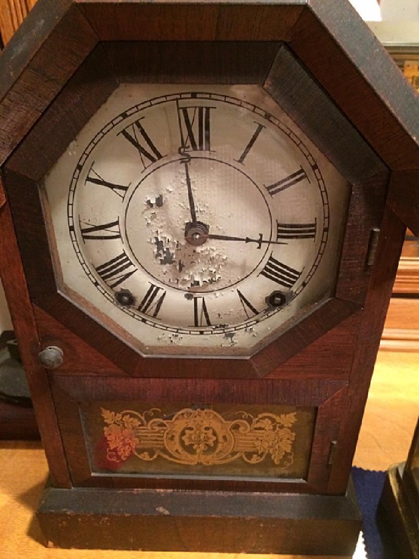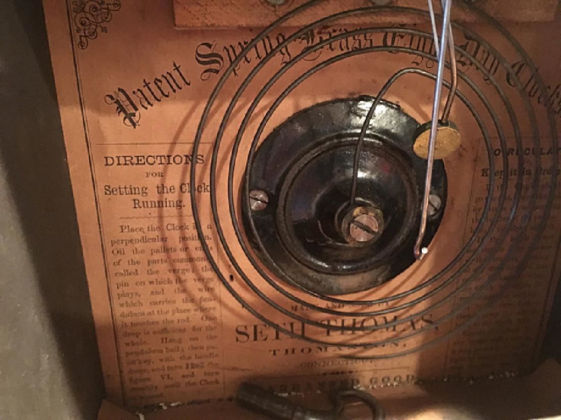 Seth Thomas Rosewood Shelf Clock, Thomaston, CT. Spring brass eight day clock with Seth Thomas "S" and "T" on hands, nice gold on lower glass, nice case, glass, pendulum and label. Measures approx. 14 1/2" tall x 9" wide x 4" deep.