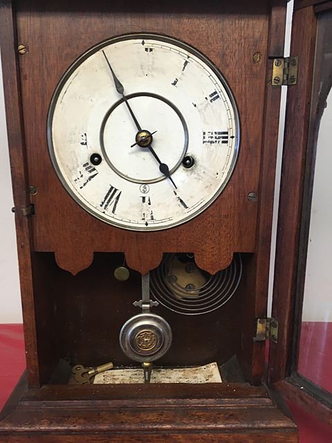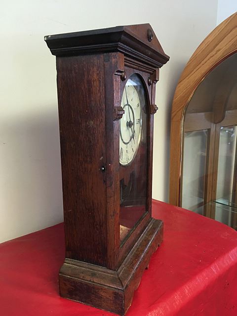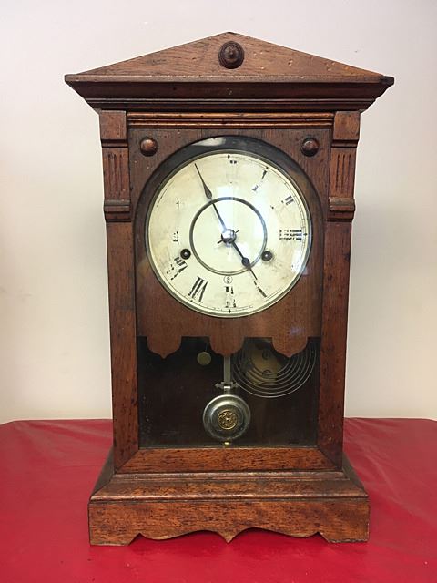 Antique Seth Thomas Shelf Clock, all original with pendulum, possibly City Series Model, measures approx. 17" tall x 10" wide x 4 1/2" deep.