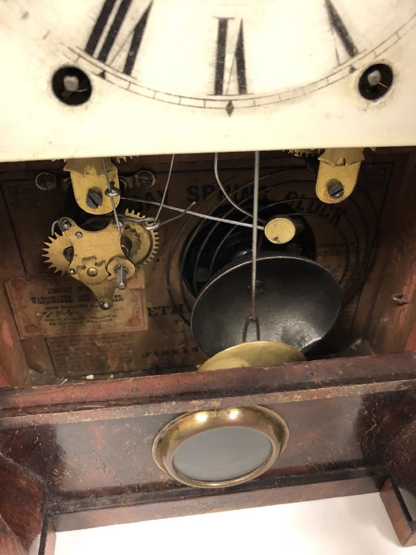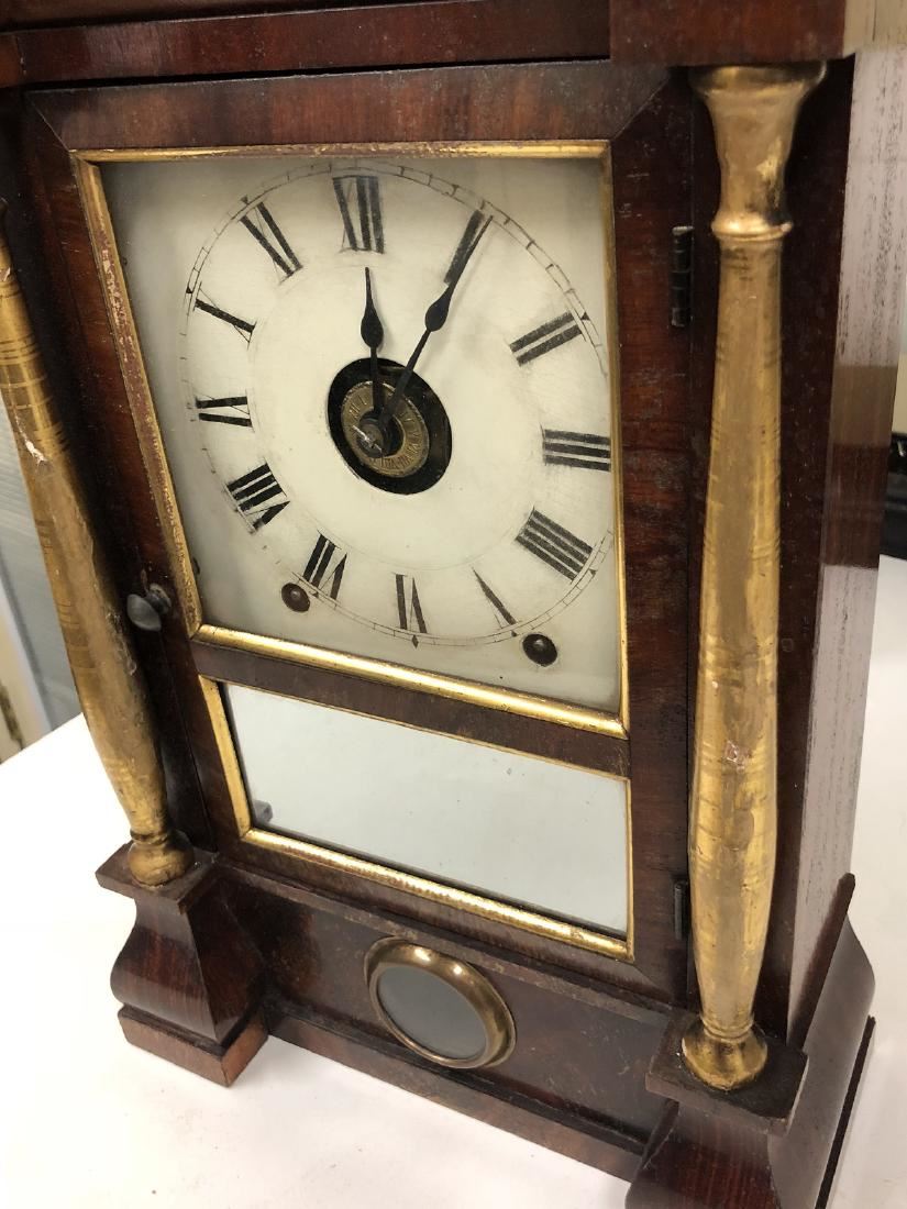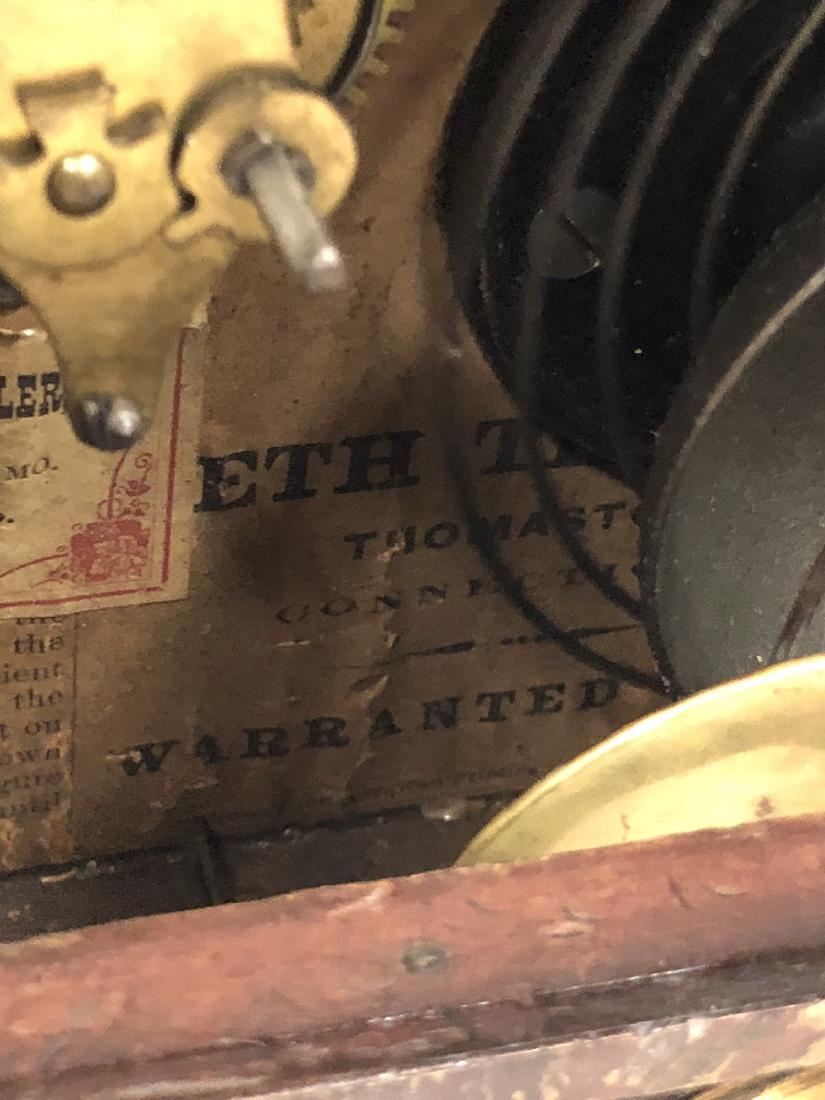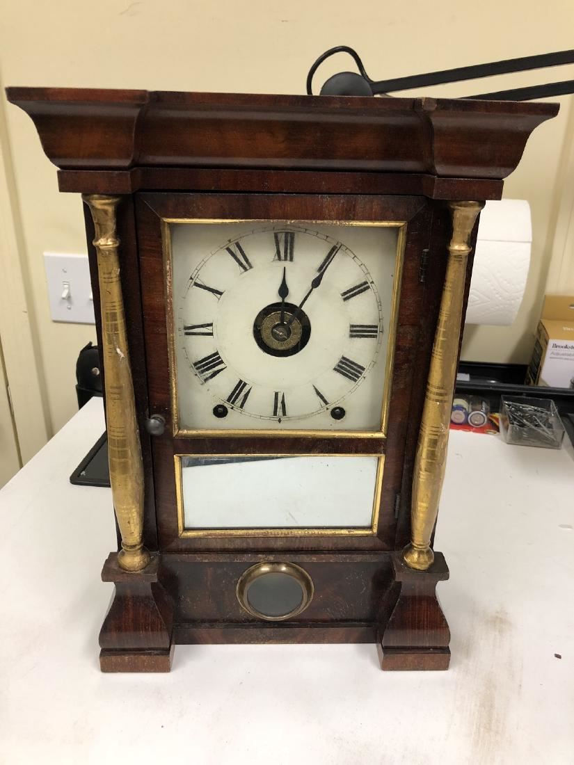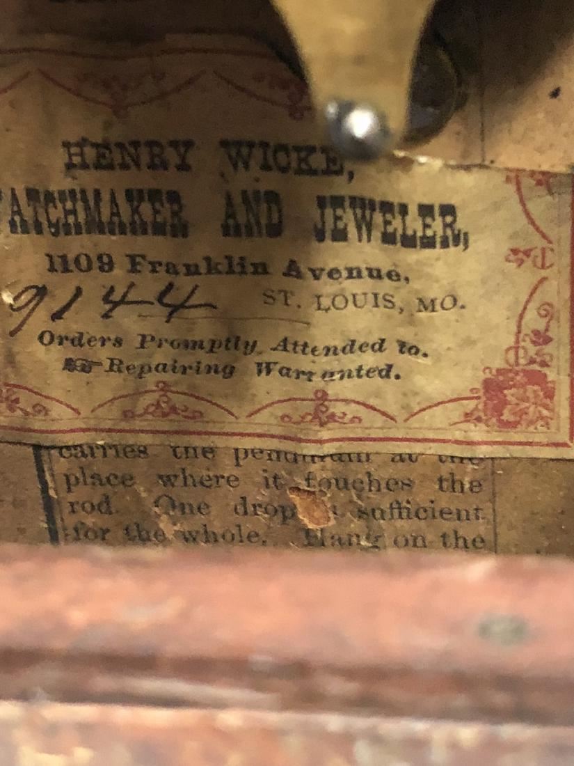 Seth Thomas Shelf Clock. Rosewood, with gold gilted columns, shelf clock with alarm, beautiful label, also has a Henry Wicks Watchmaker and Jeweler from Franklin Ave., St. Louis MO with 9144 and has a museum recorded number on the back, City Art Museum, St. Louis MO. 96-43, beautiful clock in running condition.
