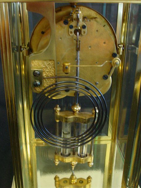 With porcelain face & mercury pendulum. Approx. 11" x 6.75" x 5 3/8" Please read our terms of sale.