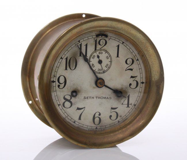 Seth Thomas inside bell ships clock. Markings: "Sub Chaser WWII 1941" SIZE: see attached ruler photo. Photos are part of the description representing the condition report and can be used for authentication prior to the sale date. Pangaea Auctions urges Bidder's to view all attached photos in detail.