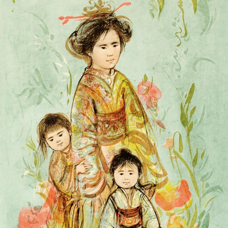 "Setsu" is a limited edition lithograph on rice paper, numbered and hand signed by Edna Hibel (1917-2014). Includes Certificate of Authenticity! Measures approx. 22" x 30" (with border), 17" x 27" (image).