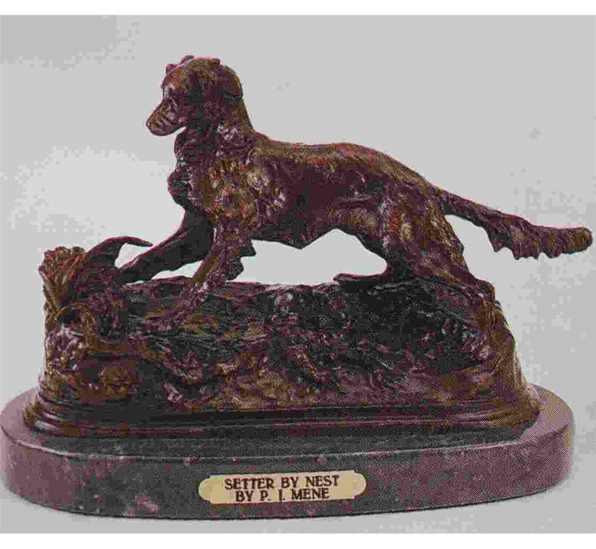 "Setter - Nest" Bronze Sculpture - After Mene - Museum Brown Finish - Mounted On A Fine Italian Marble Base - Beautifully Detailed - Signed - Mint Condition - 9"H X 12"W - Lost Wax Cast Bronze