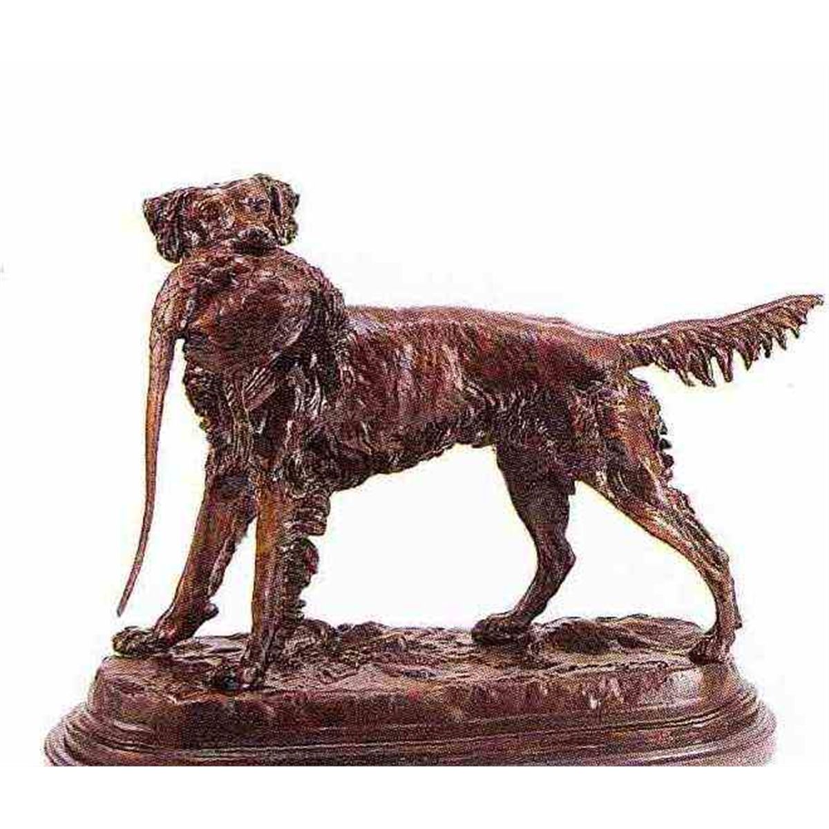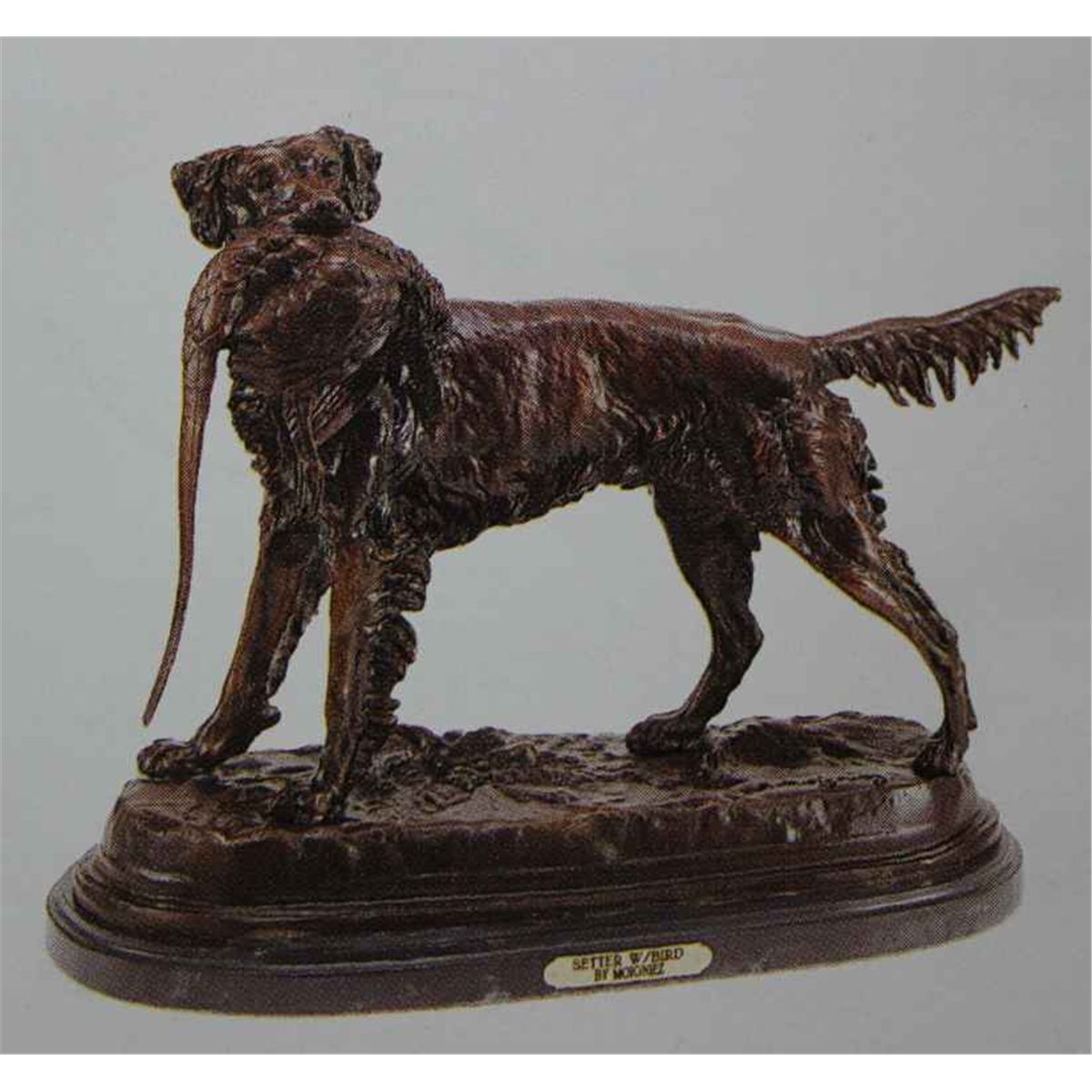 "Setter With Bird" Bronze Sculpture - After Moigniez - Museum Brown Finish - Mounted On A Fine Italian Marble Base - Beautifully Detailed - Signed - Mint Condition - 18"H X 20"W - Lost Wax Cast Bronze