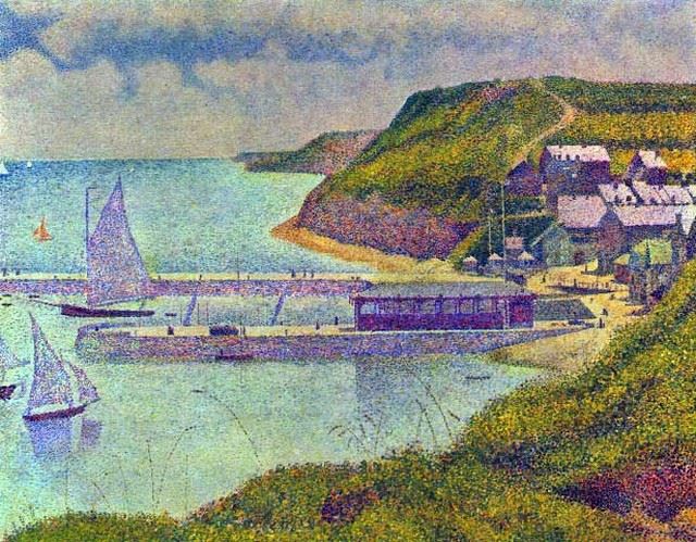 Artist: Georges Pierre Seurat - Title: Navy (Port en Bessin) - Medium: Fine Art Reproduction Giclee on Canvas - Image Size: Approximately 15.5 inches x 20 inches - Unframed on Unstretched Canvas - Biography: Georges Pierre Seurat (2 December 1859 - 29 March 1891) was a French post-Impressionist artist. He is best known for devising the painting techniques known as chromoluminarism and pointillism. While less famous than his paintings, Seurat's conte crayon drawings have also garnered a great deal of critical appreciation.