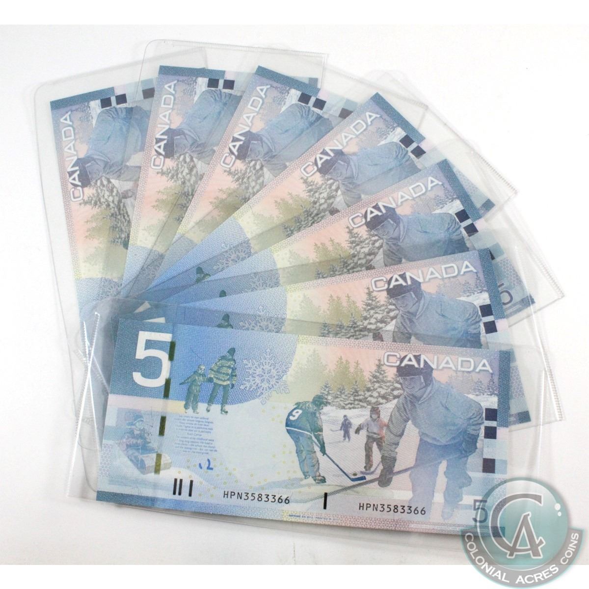 Seven 2006 $5.00 notes with consecutive serial numbers all in UNC Condition.