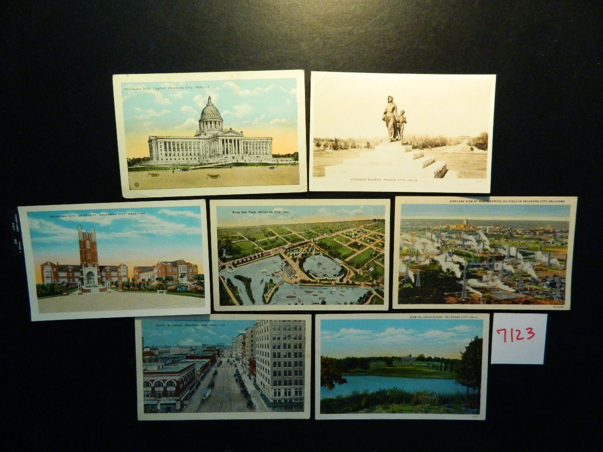 OKC University, Oil Fields, State Capitol, Bell Isle Park with Bath House, North Broadway St. showing cars from 1920s'. Nice Lot!