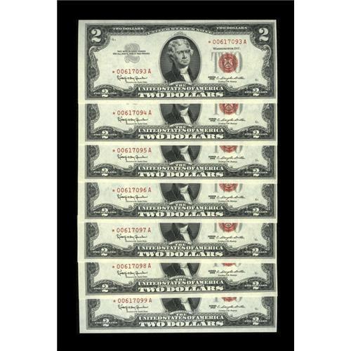 Seven Consecutive Fr. 1513* $2 1963 Legal Tender Notes.