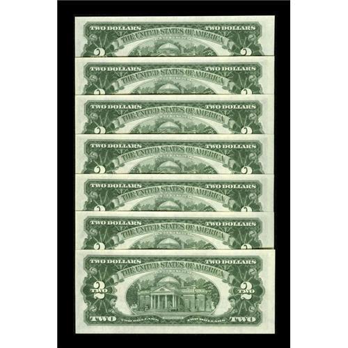<B>Seven Consecutive Fr. 1513* $2 1963 Legal Tender Notes. Very Choice Crisp Uncirculated.</B></I><BR>Each of the perfectly matched and consecutive notes in the run of seven is a bit tight at right.<BR><BR><b>Shipping:</b> Coin/Currency (<a target="_blank" href="http://www.heritageauctions.com/common/shipping.php">view shipping information</a>)