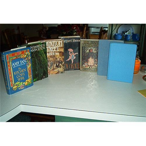 (1). Lady Oracle-A novel by Margaret Atwood-1st Edition-ISPN 099.This book and DJ is in very good condition. 345 pages. (2). Rivington Street by Meredith Tax. (A Novel) C.1982 Published by William Morrow and Company, Ave., New York. Book in Excellent condition; DJ in fair condition. (3). The Kitchen God's Wife by Amy Tan-1st Edition. C. 1991. DJ and Book in excellent Condition. 369 pages. (4). Green Darkness by Anya Seton (Love Story). DJ in poor conditon. Book in excellent Conditon 624 pages, BCE. (5). The Beans Of Egypt,Main by Carolyn Chute. C. 1985. 1st Edition. ISBN 0-89919-363-5. Smooth hard board cover. Book in excellent condition. Published by Tickmor & Fields, New York. 215 pages. (6). Death By Inches by Dell Shannon. C. 1965. 1st Edition Stated. 255 pages. Book in excellent condition. (7). To Hell With The Kids by Verna King Gruhlke. ublished by the Bruce Publishing Company, Milwaukee. C. 1968-1st Edition 200 pages. DJ Missing/Book in Excellent Condition. All books are FLB.