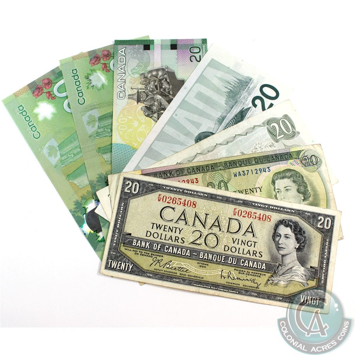 Seven Different Series of $20.00 Note ranging from 1954 to 2015. Included is a 1954, 1969, 1979, 199