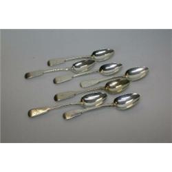 Seven George III, William IV and Victorian silver fiddle pattern teaspoons, various dates and maker.