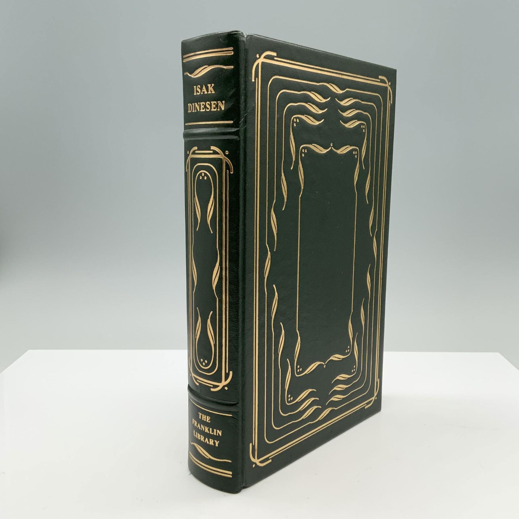 This limited edition of Seven Gothic Tales by Isak Dinesen (Karen Blixen), published in 1978 by The Franklin Library, is a stunning collectible for literature enthusiasts. The book features exquisite illustrations by Bernard D’Andrea and is bound in luxurious leather with gilt-edged pages, characteristic of The Franklin Library's renowned craftsmanship. Isak Dinesen (1885–1962), the pen name of Danish author Karen Blixen, is one of the 20th century’s most celebrated literary figures. Known for her evocative storytelling and poetic prose, she gained international fame for works such as Out of Africa and Babette’s Feast. Seven Gothic Tales, first published in 1934, was her debut work in English, showcasing her masterful use of language and her fascination with the fantastical and the mysterious. Artist: Isak Dinesen