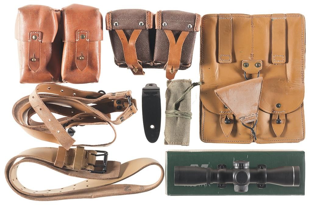 F) Dated 1937. With a muzzle break, cleaning kit, leather sling and double leather pouch.