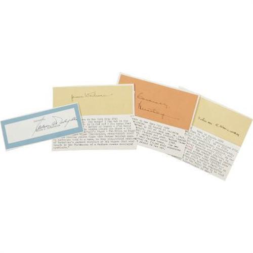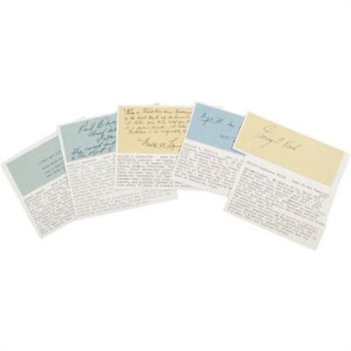 <B>Lot of Seven Noted Medical and Scientific Signatures</B></I> including: microbiologist Selman A. Waksman, ophthalmic surgeon Conrad Berens, Dr. Cornelius P. Rhoads, meteorologist Irving Krick, orthopedic surgeon Paul Magnuson, ophthalmic surgeon Walter Lancaster and surgeon William Benedict. Each signature measures about 5.5” x 2” and is mounted to a stiff backing board with typed biographical sketch. Many of the men have included quotes or other salutations. Fine. <BR><BR><b>Shipping:</b> Flat Material, Small (<a target="_blank" href="http://www.heritageauctions.com/common/shipping.php">view shipping information</a>)