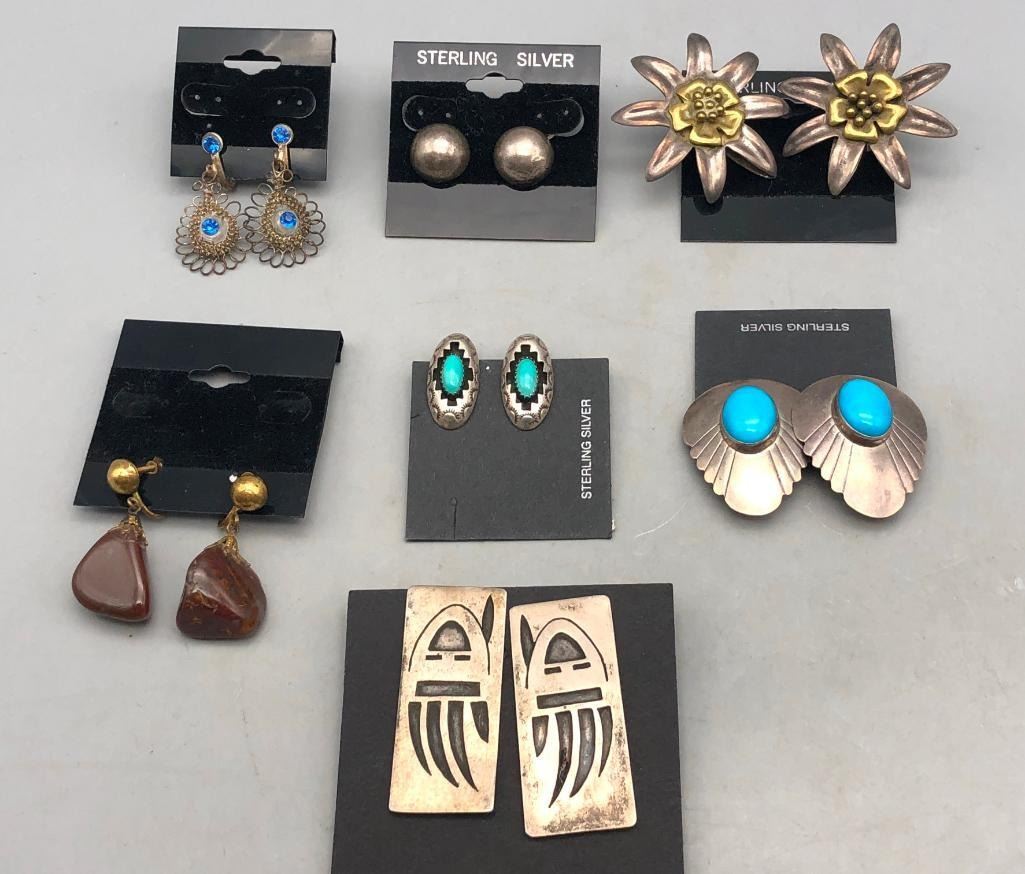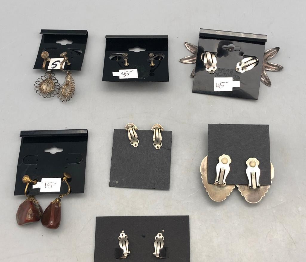 Offered for sale in this lot is seven pairs of clip on and screw back earrings. All are various styles and sizes and set with various stones. Maker: Various. Approx. Age: Vintage. Size: Various. Combined weight is 88.4 grams. Condition: Good for their age, normal wear expected. Please look closely at the pictures - they are an important part of our description. Shipping: There will be a $5 handling / packaging fee for shipping this lot. The actual cost of postage will be added on top of that. BUY IT NOW: If you would like to buy this item now without waiting for the auction to end (this option is only available up to 48 hours before the auction starts to close), the “Buy it Now” price is the high estimate of this lot. If you would like to end the auction early and pay the high estimate (plus applicable fees), please contact us by phone or email and reference this lot number.