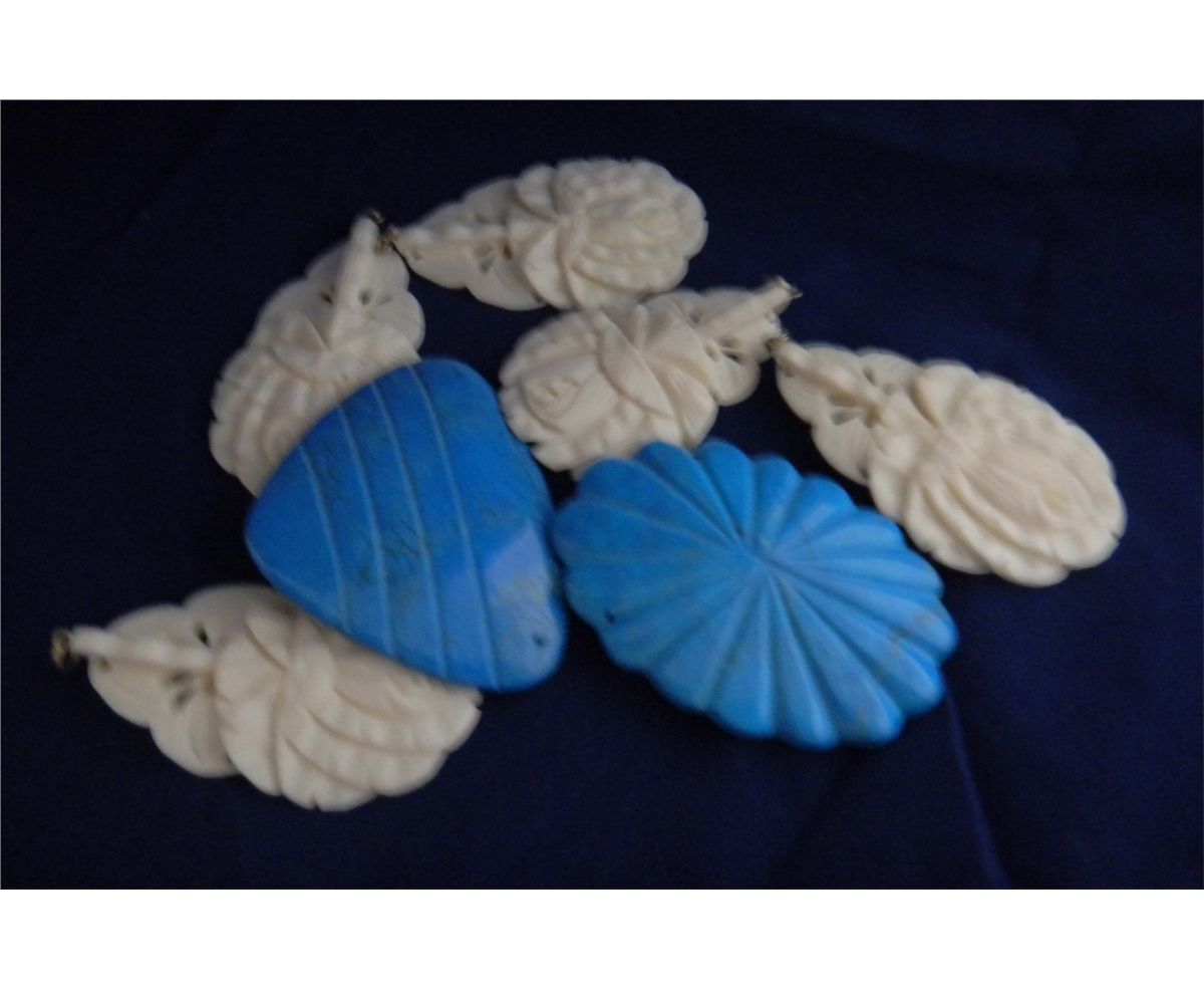 Five bone and two turquoise pendants. All approximately 2 x2 inches . Good with no damage. Shipping $10.00