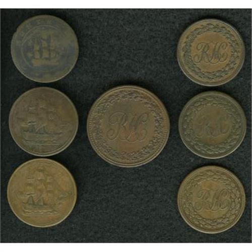 <B>Seven-Piece Lower Canada Breton Token Lot.</B></I> Includes:<B> B-531; B-989; B-990 (three pieces); </B></I>and <B>B-1004 (two pieces).</B></I><BR><BR><b>Shipping:</b> Coins & Currency (<a target="_blank" href="http://www.heritageauctions.com/common/shipping.php">view shipping information</a>)