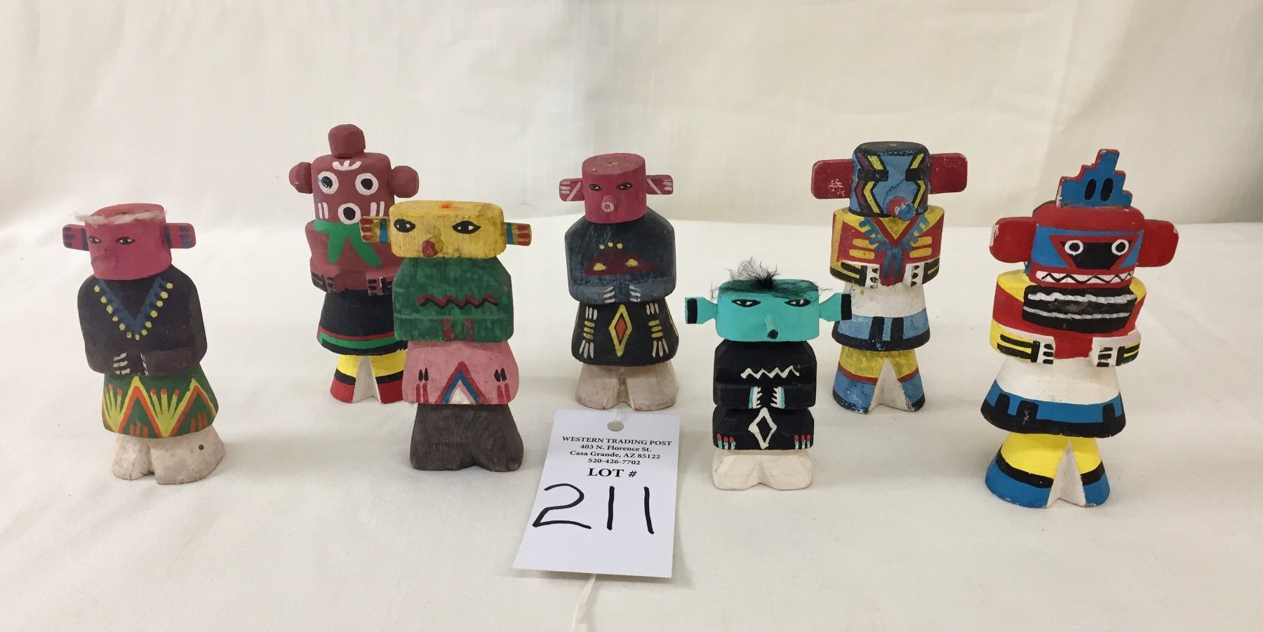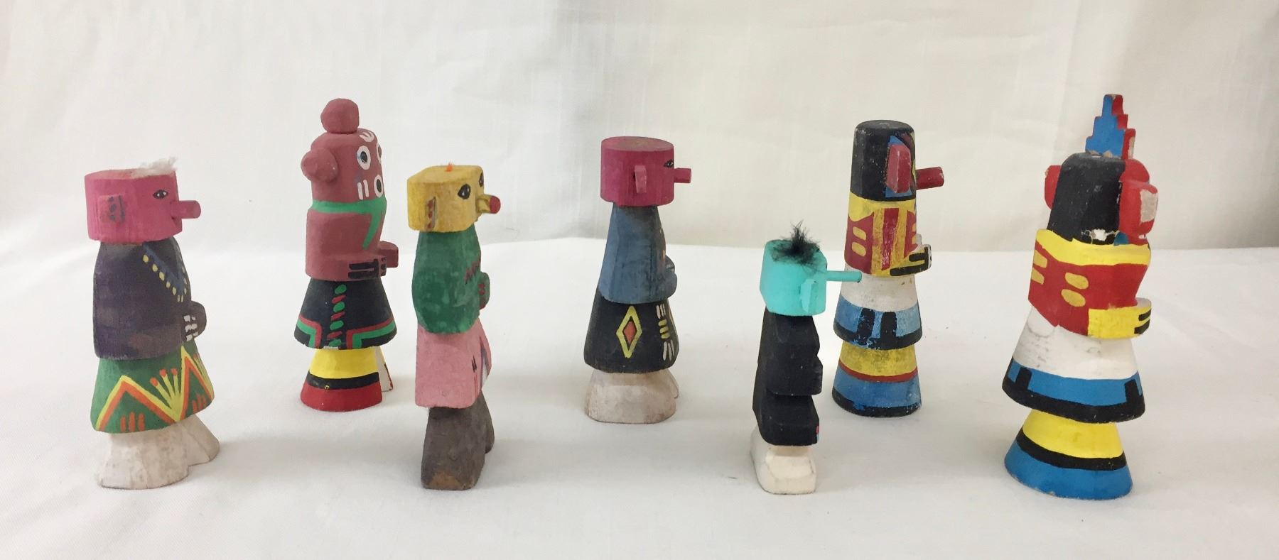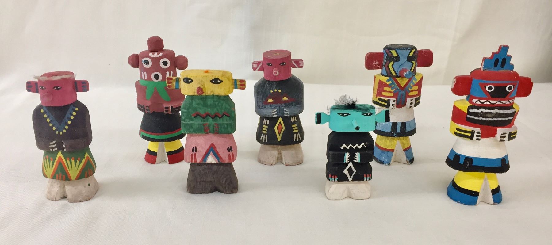 Description: Featured for sale in this lot are seven, classic, hand painted, Route 66 Kachinas. Maker: Various.